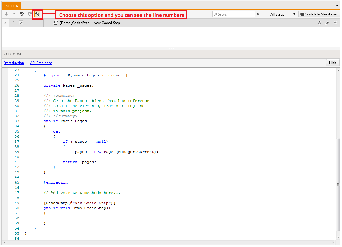 How can I view the line numbers in the code viewer in test studio web and desktop version. The log shows the line numbers where the error is, but on the code viewer I cant see any line numbers and hence it is difficult to find out where the error is.