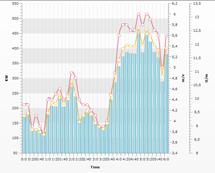 foreach (var t in e.Result.lstMeasureData) { tempData.Add(new MeasureData { Datetaken = t.Datetaken, A1C = t.A1C, DBP = t.DBP, HDL = t.HDL, LDL = t.LDL, SBP = t.SBP, Weight = t.Weight }); } SeriesMapping seriesMapping = new SeriesMapping(); //seriesMapping.SeriesDefinition = new LineSeriesDefinition(); //seriesMapping.ItemMappings.Add(new ItemMapping("Datetaken", DataPointMember.XCategory)); //seriesMapping.ItemMappings.Add(new ItemMapping("Weight", DataPointMember.YValue)); //seriesMapping.ItemMappings.Add(new ItemMapping("HDL", DataPointMember.YValue)); //seriesMapping.ItemMappings.Add(new ItemMapping("LDL", DataPointMember.YValue)); //seriesMapping.ItemMappings.Add(new ItemMapping("HDL", DataPointMember.YValue)); //seriesMapping.SeriesDefinition.ShowItemLabels = false; ItemMapping i = new ItemMapping(); i.FieldName = "Datetaken"; i.DataPointMember = DataPointMember.XCategory; ItemMapping i1 = new ItemMapping(); i1.FieldName = "Weight"; i1.DataPointMember = DataPointMember.YValue; ItemMapping i2 = new ItemMapping(); i2.FieldName = "SBP"; i2.DataPointMember = DataPointMember.YValue; seriesMapping.ItemMappings.Add(i); seriesMapping.ItemMappings.Add(i1); seriesMapping.ItemMappings.Add(i2); radChart1.DefaultSeriesDefinition = new LineSeriesDefinition(); radChart1.DefaultSeriesDefinition.ShowItemLabels = false; radChart1.DefaultView.ChartArea.EnableAnimations = true; radChart1.DefaultView.ChartArea.EnableTransitionAnimations = true; radChart1.DefaultView.ChartArea.ZoomScrollSettingsX.RangeEnd = 1; radChart1.DefaultView.ChartArea.ZoomScrollSettingsX.MinZoomRange = 0.001; radChart1.DefaultView.ChartArea.ZoomScrollSettingsX.ScrollMode = ScrollMode.ScrollAndZoom; radChart1.DefaultView.ChartArea.AxisY.Title = "Measures"; radChart1.DefaultView.ChartArea.AxisX.Title = "Dates"; radChart1.SeriesMappings.Add(seriesMapping); radChart1.ItemsSource = tempData;