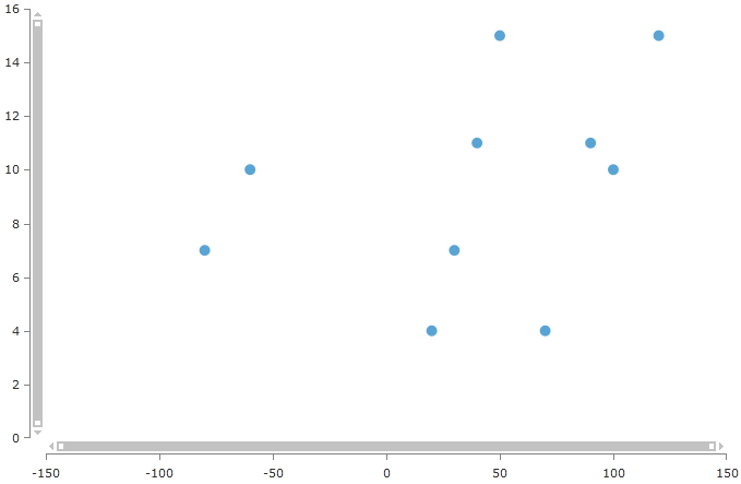 <telerik:RadCartesianChart x:Name="telerik" > <telerik:RadCartesianChart.HorizontalAxis> <telerik:LinearAxis Maximum="150" Minimum="-150" MajorStep="50"/> </telerik:RadCartesianChart.HorizontalAxis> <telerik:RadCartesianChart.VerticalAxis> <telerik:LinearAxis/> </telerik:RadCartesianChart.VerticalAxis> <telerik:RadCartesianChart.Behaviors> <telerik:ChartPanAndZoomBehavior ZoomMode="Both"> </telerik:ChartPanAndZoomBehavior> </telerik:RadCartesianChart.Behaviors> <telerik:RadCartesianChart.Series> <telerik:ScatterPointSeries> <telerik:ScatterPointSeries.DataPoints> <telerik:ScatterDataPoint YValue="10" XValue="100"/> <telerik:ScatterDataPoint YValue="4" XValue="20"/> <telerik:ScatterDataPoint YValue="7" XValue="30"/> <telerik:ScatterDataPoint YValue="11" XValue="40"/> <telerik:ScatterDataPoint YValue="15" XValue="50"/> <telerik:ScatterDataPoint YValue="10" XValue="-60"/> <telerik:ScatterDataPoint YValue="4" XValue="70"/> <telerik:ScatterDataPoint YValue="7" XValue="-80"/> <telerik:ScatterDataPoint YValue="11" XValue="90"/> <telerik:ScatterDataPoint YValue="15" XValue="120"/> </telerik:ScatterPointSeries.DataPoints> </telerik:ScatterPointSeries> </telerik:RadCartesianChart.Series> </telerik:RadCartesianChart>As you will see everything is working as expected. Could you please isolate the problem in a sample runnable project and send it to us? This way we will be able to inspect what's wrong and get back to you with more detailed feedback.