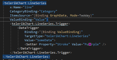 I have an idea but i don't think it is included on line series property. But it is possible to add a data trigger to lineSeries? so that i can add a setter for my specific x-axis value to change its stroke color if meet some required data from x-axis value.