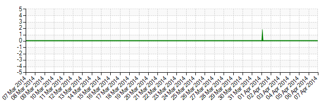 The second attachment, "Innaccurate2.png", shows how this effect is amplified as the chart control is shrunk. The spike now appears nearly over the gridline marking the value 2, though the same dataseries (with max value of 1) is still being charted.