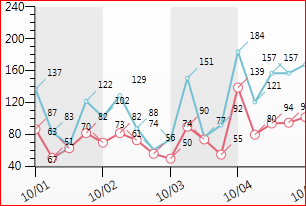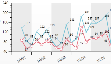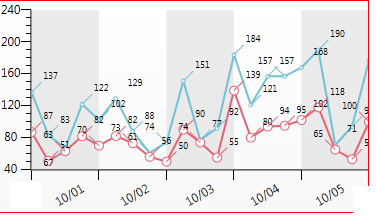 2. Series is started from half of the first Step area of the axis-X. In above snap for the Date 1st Oct it start from the Half.