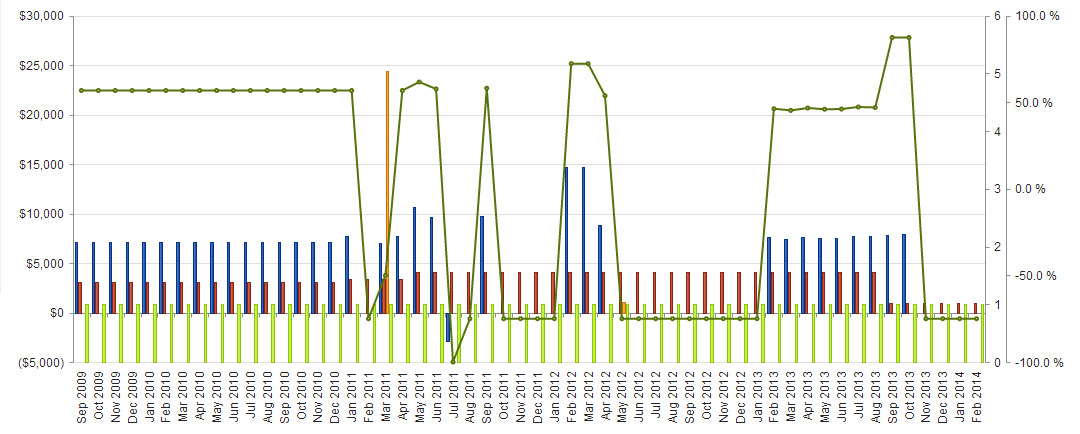 I would like to know if there is a simple way to line up the category axes of different series. If you see the attached image, you can see how the first series has a negative value and the second series starts below it.