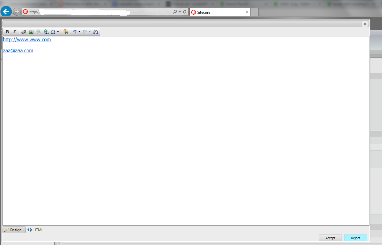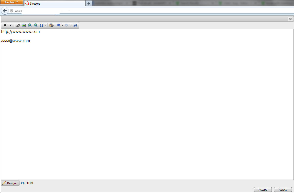 We are using RadControls v2012.2.607.35 (in Sitecore 7). When a user enters a link or an email address in the design mode in IE then the Editor automatically generates the proper html code. In Firefox and Chrome these texts stay simple texts, no <a> tag is generated. I don't see any javascript errors.