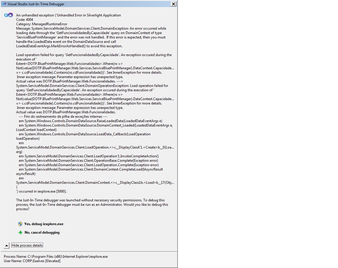 Message: An exception occured during the execution of ' Extent.Where(cc => ((cc.CustomerId = value(Siemens.Energy.ASP.NERCCIP.Data.CustomerContact+<>c__DisplayClassf).customerId) && Not(value(Siemens.Energy.ASP.NERCCIP.Data.CustomerContact+<>c__DisplayClassf).context.CustomerSites.Join(value(Siemens.Energy.ASP.NERCCIP.Data.CustomerContact+<>c__DisplayClassf).context.CustomerSiteContacts, cs => cs.CustomerSiteId, csc => csc.CustomerSiteId, (cs, csc) => new <>f__AnonymousType4`2(cs = cs, csc = csc)).Where(<>h__TransparentIdentifierc => (<>h__TransparentIdentifierc.cs.SiteId = value(Siemens.Energy.ASP.NERCCIP.Data.CustomerContact+<>c__DisplayClassf).siteId)).Select(<>h__TransparentIdentifierc => <>h__TransparentIdentifierc.csc.CustomerContactId).Contains(cc.CustomerContactId)))).Select(cc => new <>f__AnonymousType3`2(CustomerContactId = cc.CustomerContactId, name = ((cc.FirstName + " ") + cc.LastName)))'. See InnerException for more details. .