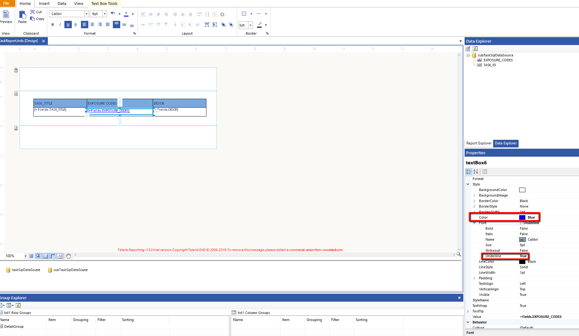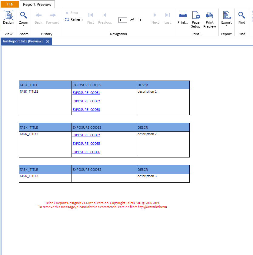 I tested with the example from the Table Item That Contains Unique List forum post and couldn't reproduce the described behavior. I have attached the modified example, a screenshot of the TextBox set-up, and of the report preview. Take a look at the example and try to adjust the report accordingly.