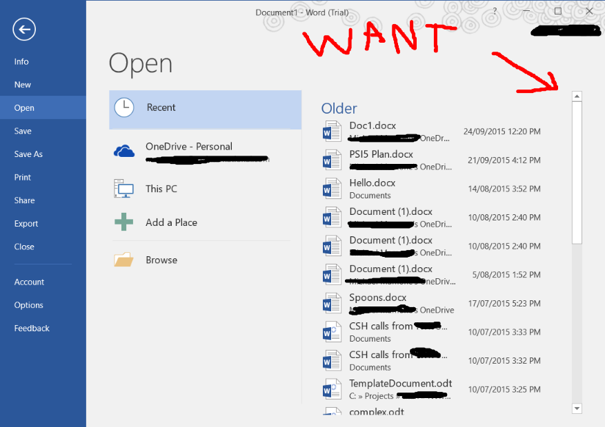 We are currently implement an "Office Inspired" application, so are making use of the backstage view. One of the items contains a list of files the user can open. When this list becomes larger than the window, rather than a scrollbar appearing on the list, it appears on the entire backstage view.