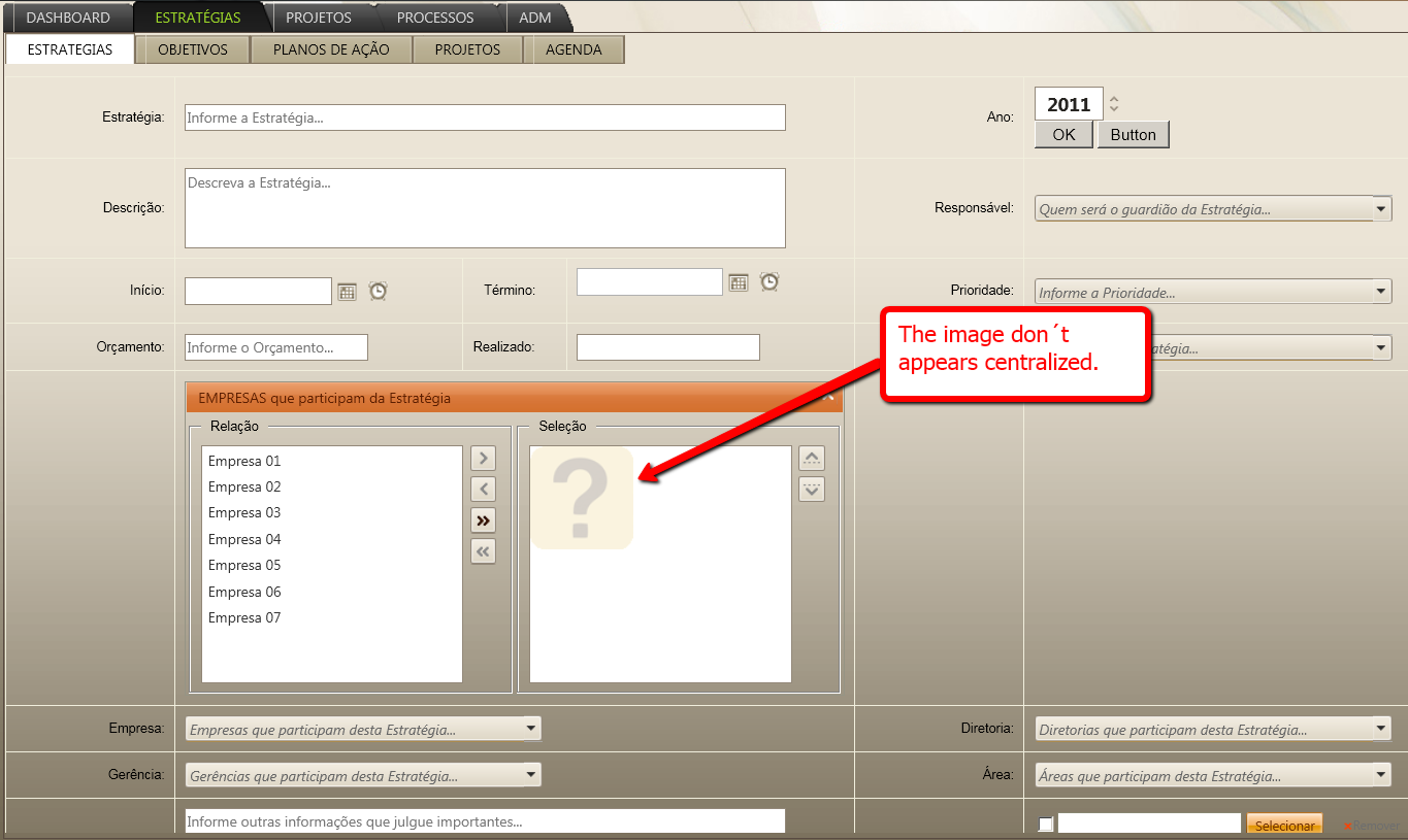 When I run my application in the first time, the image don“t appears centralized. If I transfer one item to listbox and delete, the image is centralized.