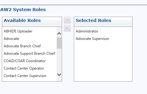<asp:UpdatePanel runat="server" ID="updPnlRoles"> <ContentTemplate> <telerik:RadListBox runat="server" ID="rlbxAvailableRoles" Height="210" Width="230" AllowTransfer="true" TransferToID="rlbxSelectedRoles" ButtonSettings-AreaWidth="35px" ButtonSettings-ShowTransferAll="false" AllowTransferOnDoubleClick="true" SelectionMode="Multiple" EnableDragAndDrop="true" AutoPostBackOnTransfer="true"> <HeaderTemplate> <h3>Available Roles</h3> </HeaderTemplate> </telerik:RadListBox> <telerik:RadListBox runat="server" ID="rlbxSelectedRoles" Height="210" Width="190" EmptyMessage="Select at least one role" AllowTransferOnDoubleClick="true" SelectionMode="Multiple" EnableDragAndDrop="true" AutoPostBackOnTransfer="true"> <HeaderTemplate> <h3>Selected Roles</h3> </HeaderTemplate> </telerik:RadListBox> <asp:CustomValidator ID="cvSelectedRoles" runat="server" ErrorMessage="You must have at least 1 role" ClientValidationFunction="cvSelectedRoleVal" ControlToValidate="rlbxSelectedRoles" ValidateEmptyText="true" CssClass="validator" ValidationGroup="userValidations"> </asp:CustomValidator> </ContentTemplate></asp:UpdatePanel>