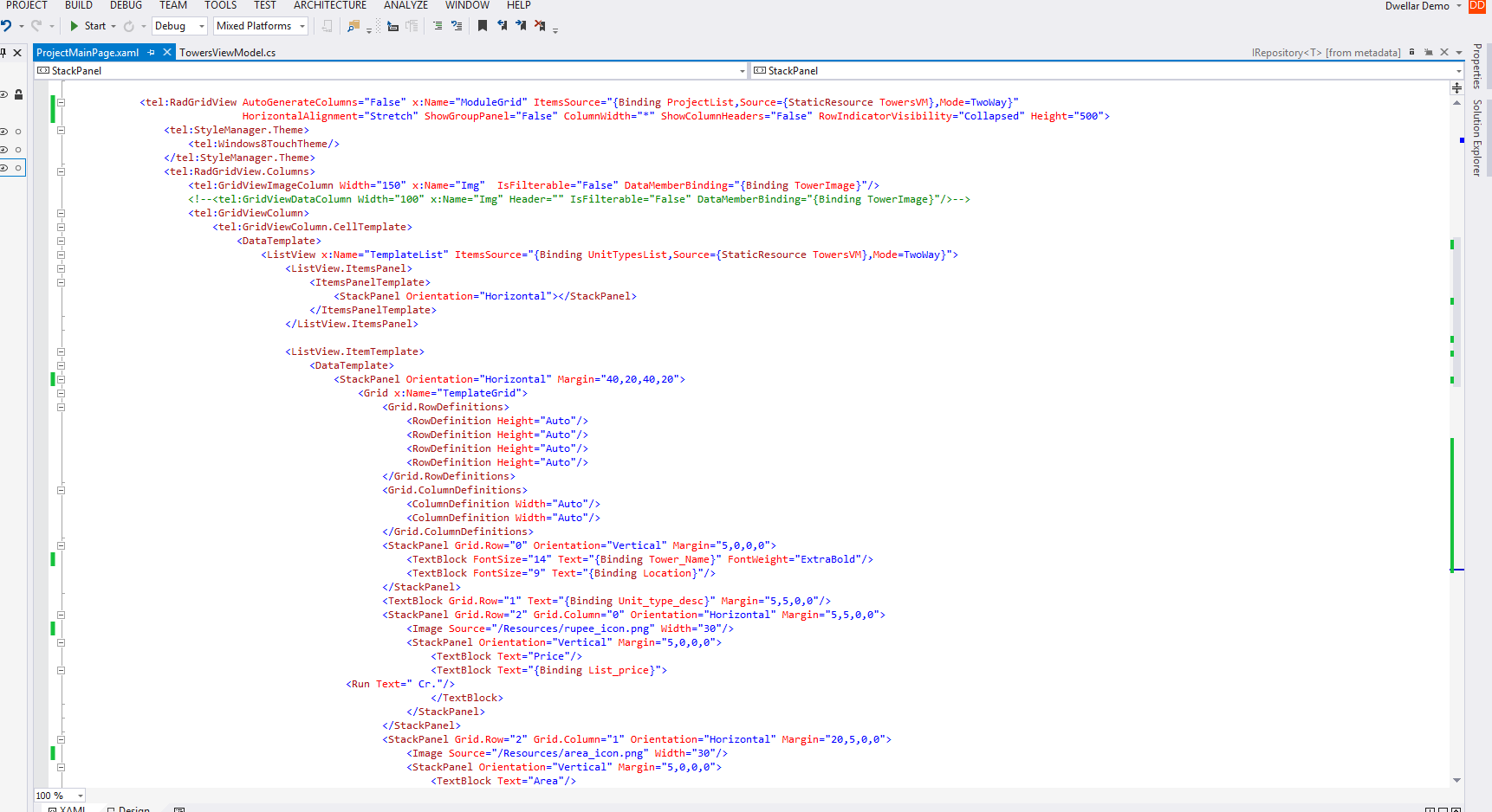 I added a ListView(Horizontal) inside a RadGridView such that every RadGrid row will have different number of ListView Items.How can I achieve this using MVVM (through view-model) ?