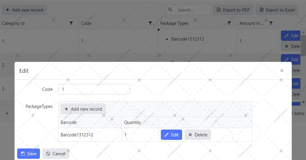 I have a product save screen. There are package types depending on this product. If all I want is to fill the package types, I will make various updates, additions or deletions on this data.