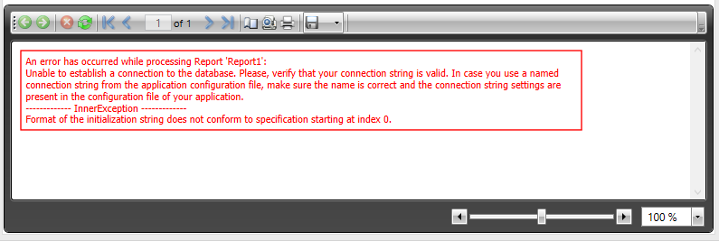 The error says that the problem is about a ConnectionString but I not repair it, if I could solve this problem once can see the report as I do in order to manipulate the SqlDataSource that has the report and to send parameters to show me different data.