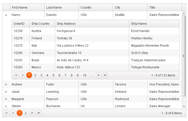 For example on: http://demos.kendoui.com/web/grid/hierarchy.html Is there a setting (using the KendoUI ASP.NET MVC controls) that will change the initial grid loading so that the first nested record in a hierarchy grid (ie: the "Nancy" record) loads in a collapsed state.