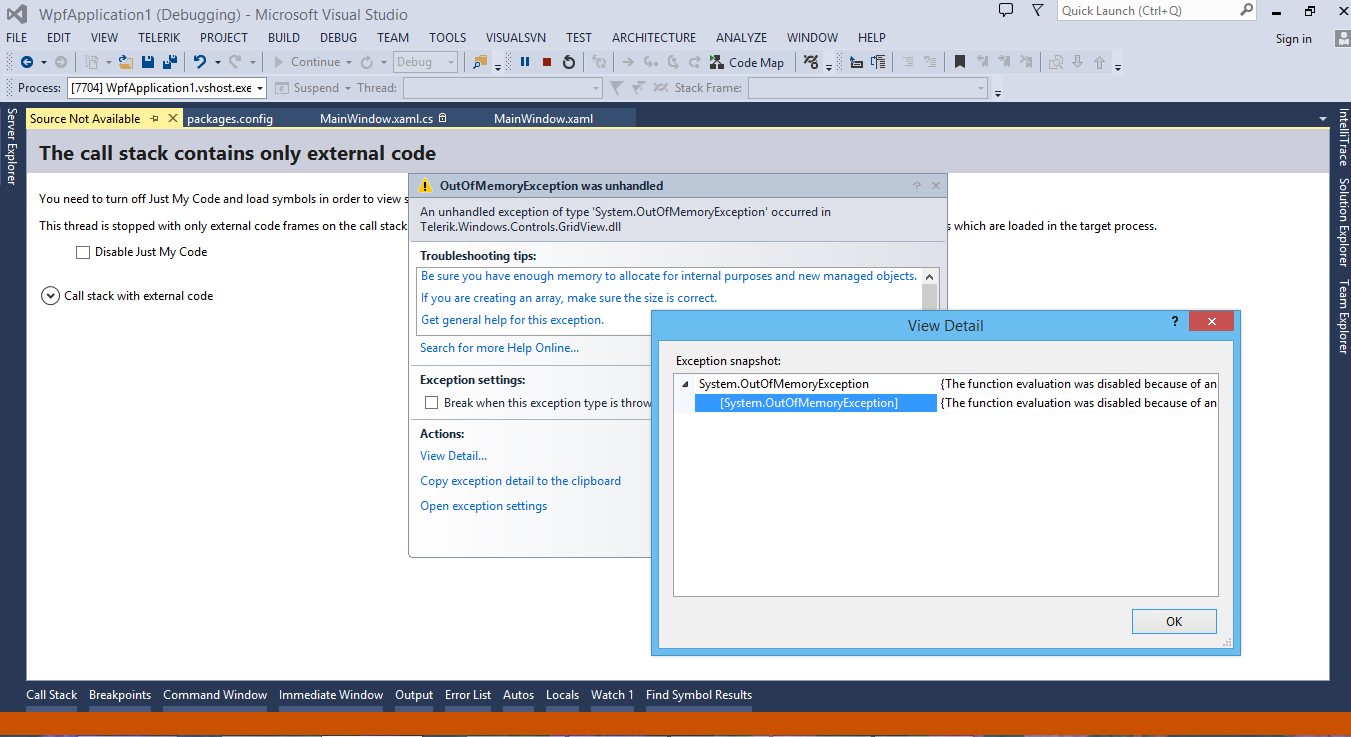 Have you check how much free memory during the debug time