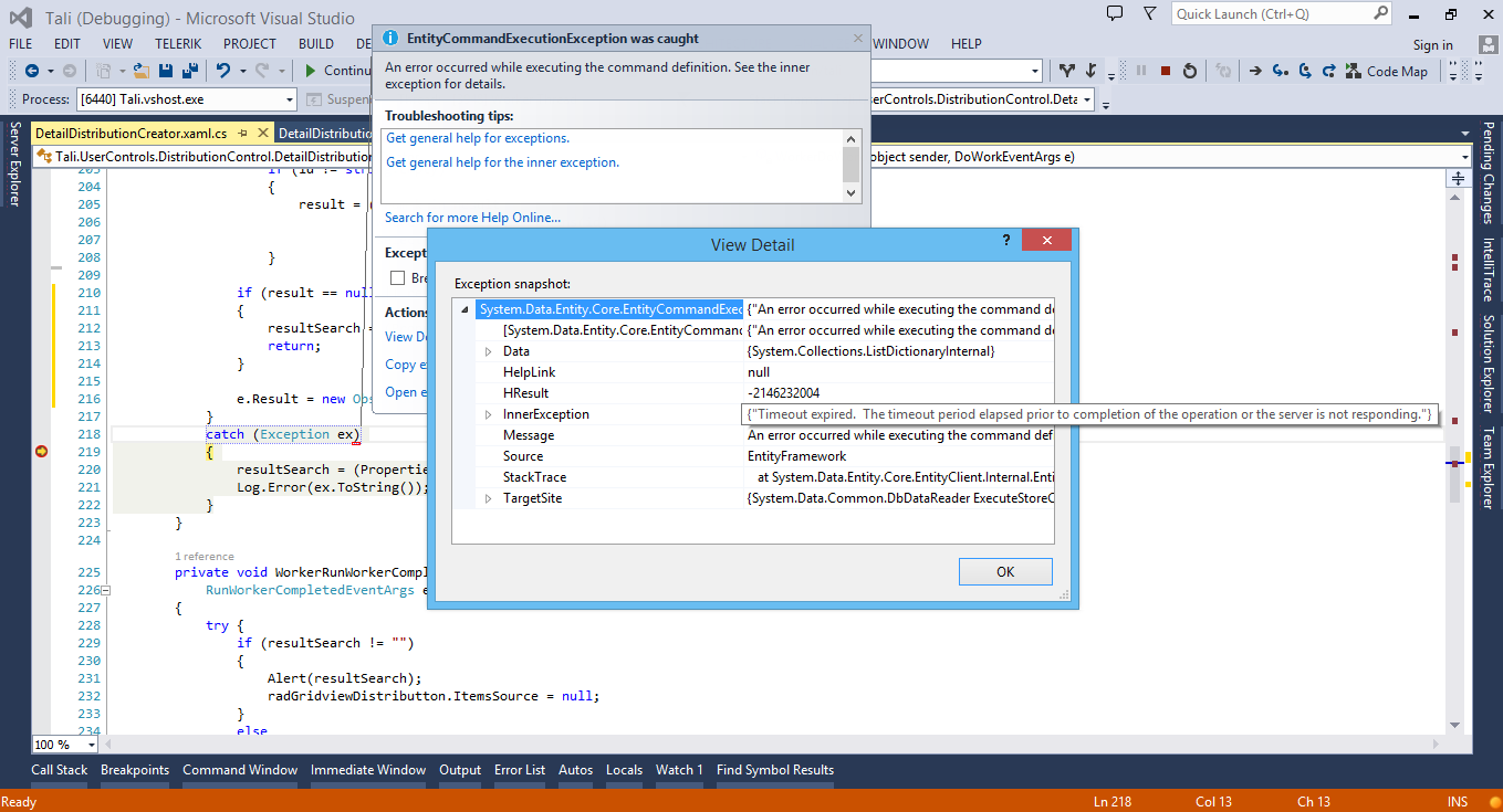 Would you please share more information on those timed out errors, for example the full StackTrace?