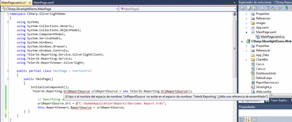 (Firstly sorry for my English ) I have the same problem but in a Silverlight project. If I want to use Telerik.Reporting.UriReportSource is not posible because in my xaml.cs file does not exist-->attach file (imagen error.png)