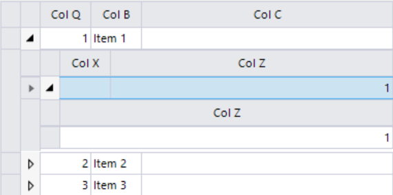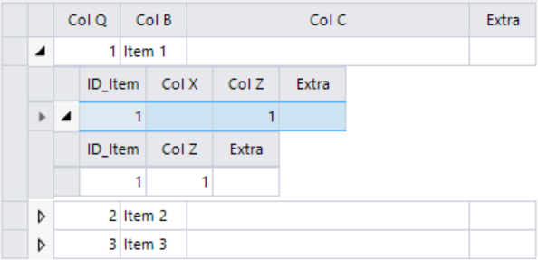 2 - Grid after assigning new datasource, template settings on all levels are maintained and extra columns are correctly added to all templates. The third hierarchy level is not accessible anymore.