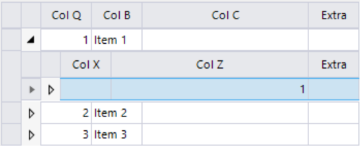 2 - Grid after assigning new datasource, master template settings are maintained. The "Extra" column is correctly added to all templates to reflect the new datasource. Nested template's settings are incorrectly reset.