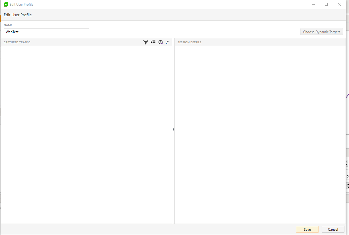 I also have a recorded webtest available. But when I tried to use it as a user profile, I do not see any traffic going through even though the test executed successfully. But when I click on computer, it does capture my local traffic if I select capture a new session and click computer under device.