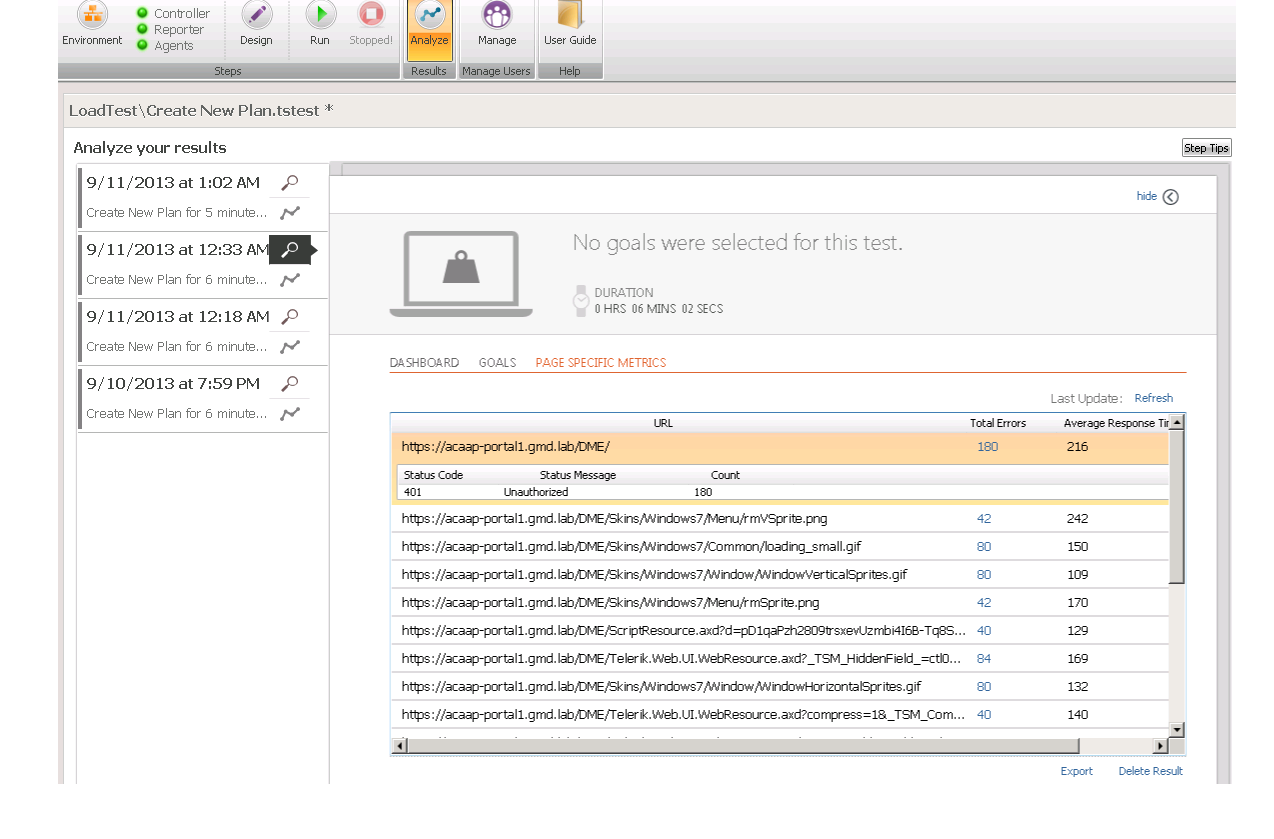 One of the challenge I'm facing right now is that on the Page Specific Metrics of the result, there is only one URL that was returned wherein fact there are multiple URL that was captured during the recording of my user profile (webtest). Can you please explain why this is happening.