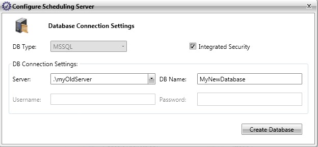 open the "Configure Scheduling Server" menu (screenshot 1). You need to create a new SQL database. To do this simply enter a new name for this database. The rest of the settings can remain the same (screenshot 1).