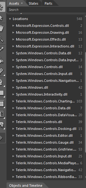 3. Opened the project in Blend 4.0 and the Calendar and Combo where there and I was able to access their properties and edit them. Also in the Assets tab I can see all controls from Controls and Input dll's. They were in Assets->Locations->"Name of the dll" .