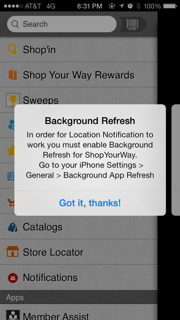 I know this idea is not unheard of. It looks like the ShopYourWay (Sears/Kmart) IOS app uses something similar (see attachments). I'm guessing the GMail IOS app does something like this too, as its notifications (while closed) include unique sounds and behaviors, different from the standard push notification.