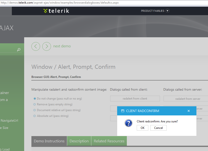 I don't know when this has started happening, but while going through our site I noticed that the confirmation & cancel buttons have a "#" as the text and then #LOC[OK]## and ##LOC[Cancel]## off to the right. At first I was trying to figure things out on my end, but when I couldn't figure it out I went to the demos and noticed that it had the same exact issue. Despite having a RadWindowManager on the page with the following configuration, I still get the same oddity: