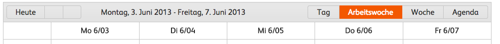 The date headers in the day, week and workweek are in the English format. E.g.: Mo 6/03 while it should be Mo, 3.6.