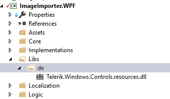 i placed the file "Telerik.Windows.Controls.resources.dll" I found in C:\Program Files (x86)\Progress\Telerik UI for WPF R1 2019\Binaries\WPF45\de in the folder "Libs/de" and added the following lines to my code: