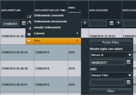 - If I launch the filtering from the column textbox (even with EnableScriptGlobalization="true") and I then open the headercontext menu, here the date displayed in the filter box is inverted with MM/dd instead of dd/MM