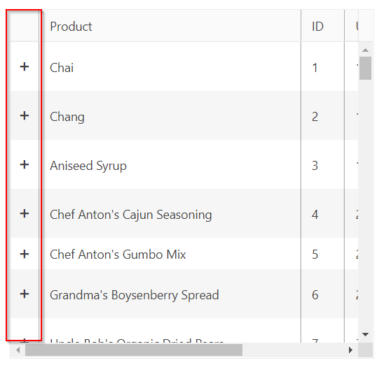 I'm looking for a way to lock the column that opens/closes the detail row in a Master-Detail Grid. I can probably use css however I have the next column also locked which dynamically puts it sticky at left: 0, Which would overlap the open/close column.