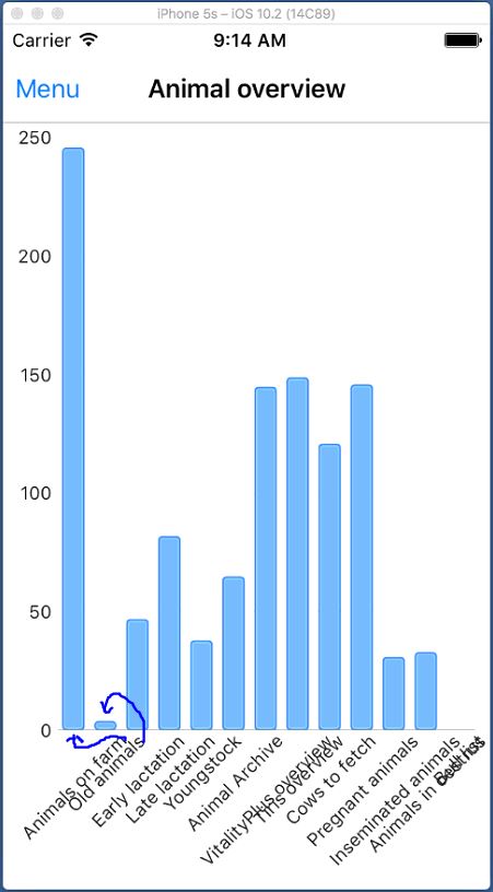 But it seems to me they are rotated around the center of the label which causes the impression that labels are aligned with the next bar. See the screenshot. The labels should be rotated around the upper right corner or this should be a property that can be set. Now labels are show under the wrong bar, they have an offset of one and the fist bar has no label. The end of the first label "Animals on farm" should be aligned under the first bar.