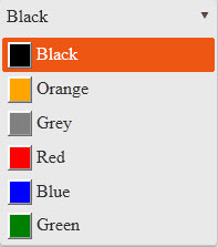i am able to append new elements to the dropdown, want to change the Hover color for selected Item and after selecting i want to show color pallet and Text side by side.Can any one help me in this context.