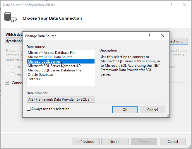 Hi, which control can I use to connect to sql server and get a list of database names (without manual implementation)? Currently I have to use manual code to get the database + table name then add to the some controls like treeview and listbox respectively