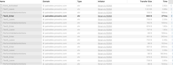 Hi there! I'm not a developer but working with one to try and get a fix for my web application. This specific issue is not happening on any desktop computer but appears to be happening on my MacBook Pro when using Safari (not Chrome) and my 5th Gen iPad in both Safari and Chrome. When access a specific section of the program it begins to 'tab' through every field on that page endlessly. When I check the network log it states 'PerformValidationActions' appears to be in a loop cycling through 'text1_enter' 'text1_leave' 'text2_enter' 'text2_leave' 'text3_enter' 'text3_leave' etc. It EVENTUALLY ends but then when you try to log out you get the error Object reference not set to an instance of an object.