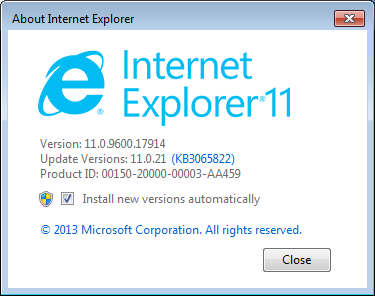 Hi all, we facing same issue only with one browser version - windows 7 32bit, IE11 11.0.21 (see screenshot).