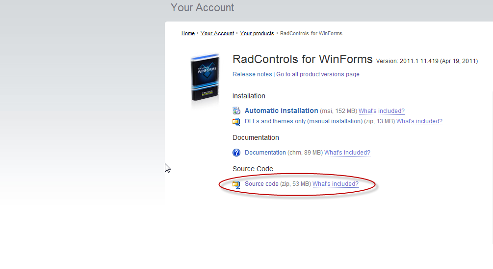 About the source code, the new SP1 release is fine, the problem was the 2011 Q1 original release (2011.1.11.315).