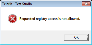 2) It's a known fact that UAC can get in the way of test automation with Test Studio. Is it possible for you to talk with your system administrators about this so you can set aside a few machine intended for test execution (i,,e with the UAC turned off).