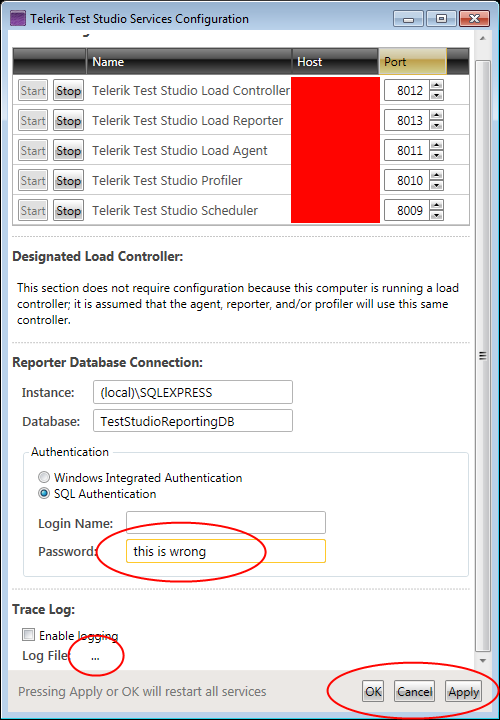 - Load test services has no password field, it just shows the password there in clear text. - are you referring to the Services Configuration menu and specifically to the SQL Authentication credentials? Excellent suggestion! I've added this as a bug: http://www.telerik.com/support/pits.aspx#/public/test-studio/13685