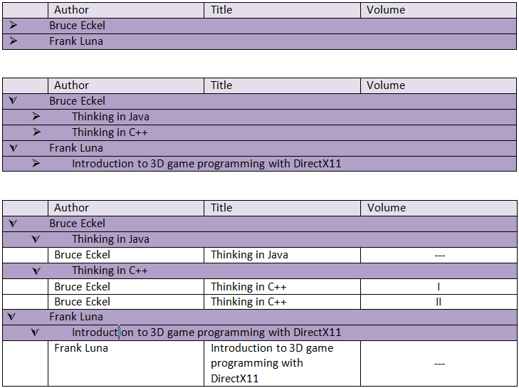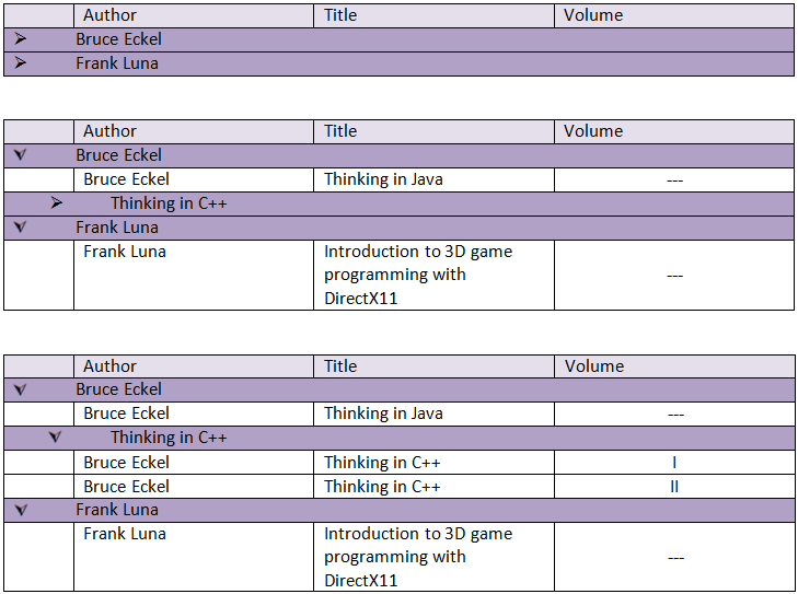 <GroupByExpressions> <telerik:GridGroupByExpression> <SelectFields> <telerik:GridGroupByField FieldAlias="Gmina" FieldName="NazwaOrganuProwadzacego" FormatString="{0:D}" /> </SelectFields> <GroupByFields> <telerik:GridGroupByField FieldName="NazwaOrganuProwadzacego" SortOrder="Ascending" /> </GroupByFields> </telerik:GridGroupByExpression> <telerik:GridGroupByExpression> <SelectFields> <telerik:GridGroupByField FieldAlias="Nazwa Placówki" FieldName="NazwaPlacowki" FormatString="{0:D}" /> </SelectFields> <GroupByFields> <telerik:GridGroupByField FieldName="NazwaPlacowki" SortOrder="Ascending" /> </GroupByFields> </telerik:GridGroupByExpression></GroupByExpressions>I made a picture of a simple table that represents of how it looks like ( "is.png" ), and how I want it to look like ( "want.png" ).