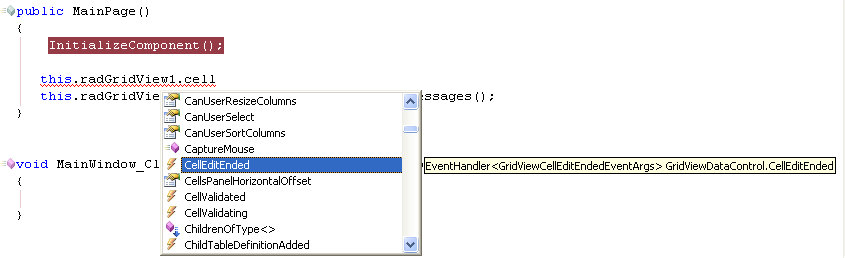 In looking at the screenshot you've posted, it looks like you are using the RadControls for Silverlight. Am I correct in assuming this? This forum is actually for the RadControls for WinForms. The RadGridView for Silverlight has an API very different from the RadGridView for WinForms. You can find the GridView for Silverlight forum here. I apologize for any confusion this may have caused.