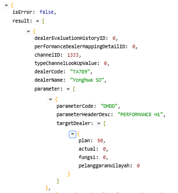 My problem is I want to display the data in the 'parameters' list in the multi column with the 'plan' and 'actual' objects that exist on the object 'target Dealer'