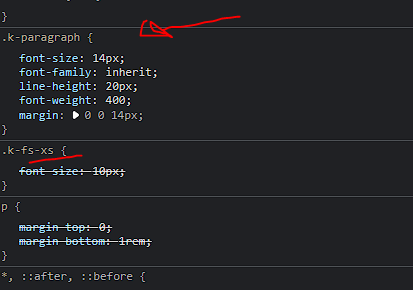 the class k-paragraph, or k-h6, k-h... is overriding