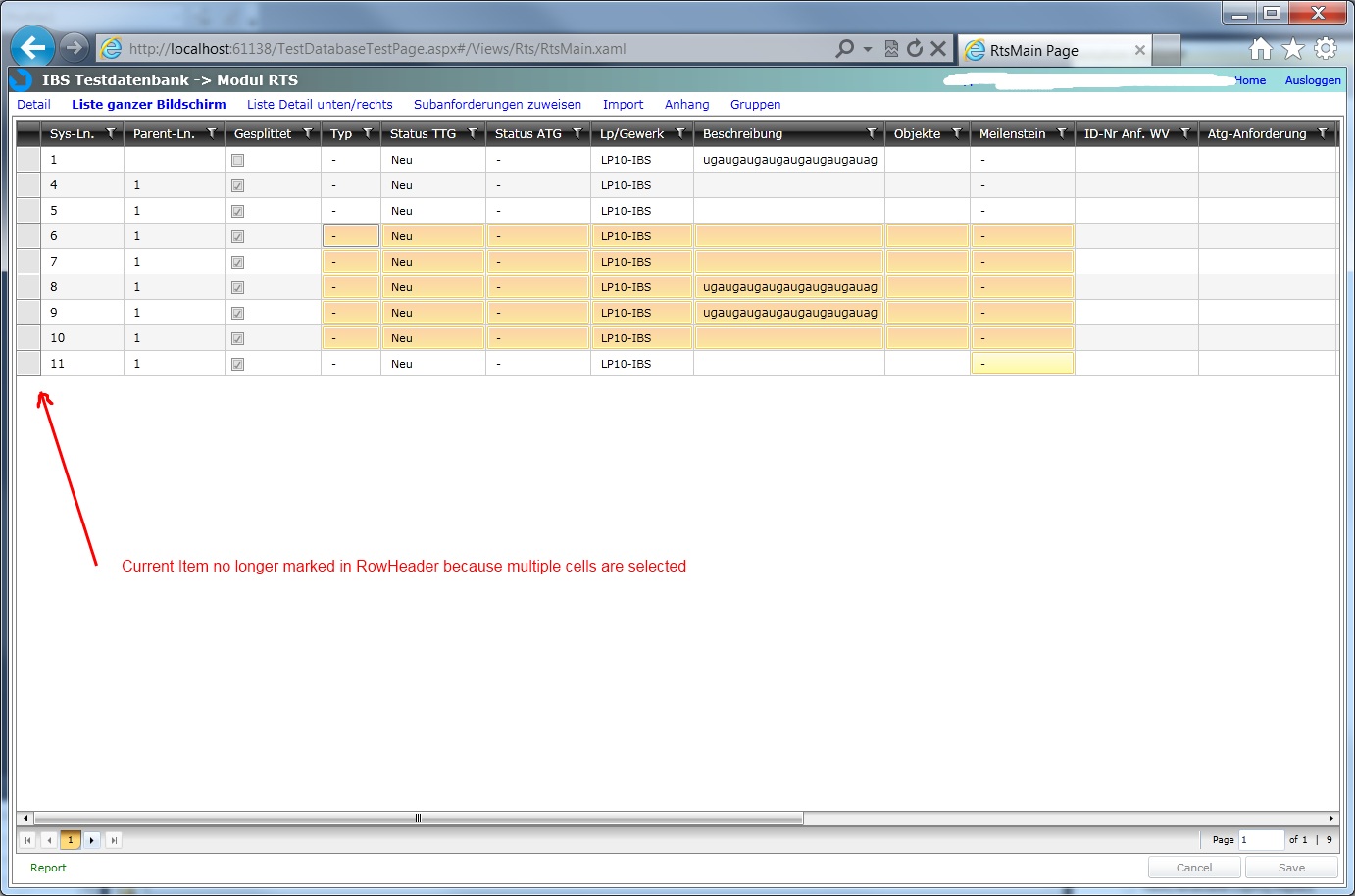 We use Silverlight 4 and the RadGridview. Our Grid has lots of columns and when scrolling it is helpfull if the concerned row is mared/selected. Selection works normally fine but when various cells are in edit mode, this no longer works.
