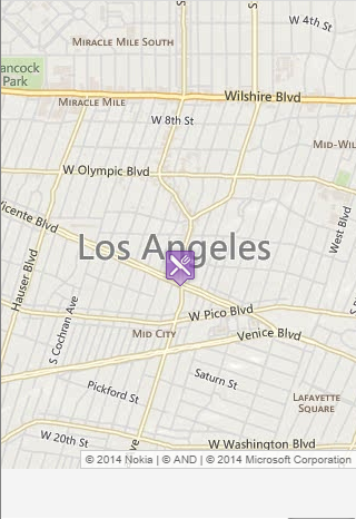 01.$("#localMap").kendoMap({02. center: [lat, lng],03. zoom: 10,04. controls: {05. zoom: true06. },07. layerDefaults: {08. marker: {09. opacity: 0.7510. }11. },12. zoomEnd: function() {13. $("#localMap").data("kendoMap").center();14. },15. 16. layers: [17. {18. type: "bing",19. imagerySet: "road",20. key: "xxx"21. },22. 23. 24. {25. type: "marker",26. tooltip: {27. template: "#= marker.dataItem.name #"28. },29. shape: 'restaurant',30. dataSource: {31. data: App.restaurantVenueArray32. },33. locationField: "latlng",34. titleField: "name"35. },36. {37. type: "marker",38. tooltip: {39. template: "#= marker.dataItem.name # </br> #= marker.dataItem.phone # "40. },41. shape: 'winery',42. dataSource: {43. data: App.retailVenueArray44. },45. locationField: "latlng",46. titleField: "name"47. }48. ],49. markers: [50. {51. location: [lat, lng],52. shape: "here",53. tooltip: {54. content: "Current Location"55. }56. }57. ]58.});