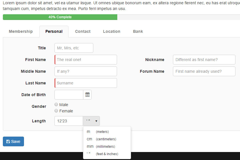 I have a numeric textbox with a dropdown next to it where the person choose m, cm, mm or " ' and then that goes to the stored procedure and I handle it there... I store everyone's height in my choice (cm in my case). My select stored procedure, look at the users user preference (lenght measurement) and then know how to transform the value.