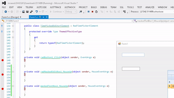 The mouse up, double click and, mouse down events do not fire inside the radmaskededit box control. They only fire when clicking on the edge of the control. The events work fine for the regular masked edit box.