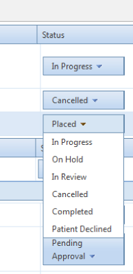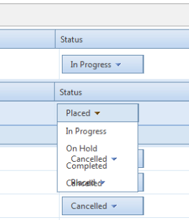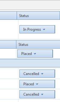 I am having a problem with multiple MVC Telerik Menus overlapping within a MVC Telerik Grid. In the screenshots, you can see that I am using a detail in the view which is another MVC Telerik Grid and it too has a column that uses a MVC Telerik Menu. What's happening is the menu in the detail view is having an overlap problem with the top level menu items in the parent Telerik Grid. I included both a screenshot of the overlap issue as well as what the menus look like when they are closed, and you can see that the two rows that have "Cancelled and "Placed" top level menus are bleeding through the detail menu when that menu is expanded.