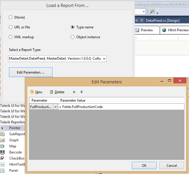 If the master report is based upon a stored procedure and I try to pass a parameter as a field from that procedure, I get a "object reference not set to an instance of an object" error in preview.